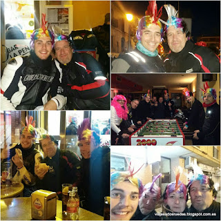 La tarde pasa paseando, tomando unas cañas y viendo el espectáculo motero que organiza el ayuntamiento, y los propios moteros, hasta una cena basada en bocadillos y un café, para que ayude a afrontar otro evento típico y tradicional de esta fiesta, el desfile de antorchas.