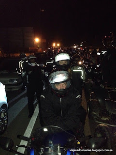 Una vez unido el grupo de compañeros que compartiríamos una jornada invernal motera, aproximadamente unos 30, y tras repostar las motos que habíamos llegado desde más lejos, iniciamos la ruta que, como otras tantas ocasiones había preparado nuestro compañero Sute (Miguel), donde el saber hacer siempre está presente en los recorridos que hacemos, decir que me impresiona como realiza los recorridos, así como la disponibilidad de planes B que tiene en la manga para usarlos en caso de necesidad, como por ejemplo, reducir el tiempo disponible o kilómetros a realizar.
