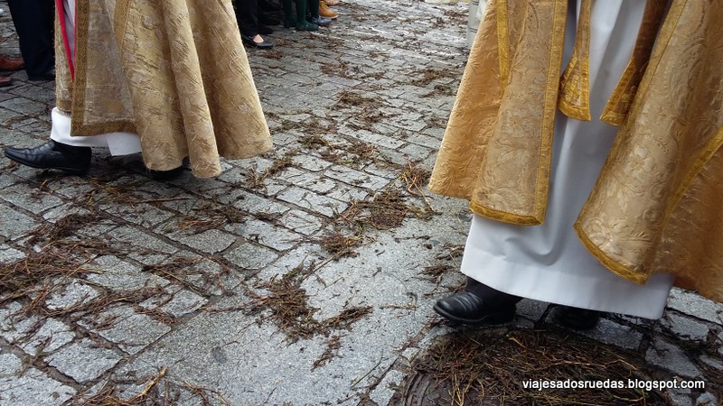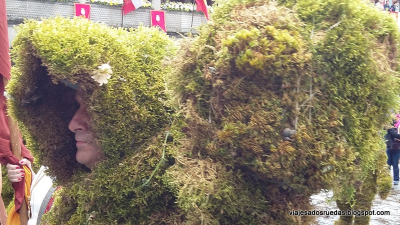 Llega un momento esperado, la parte final de la procesión, donde otros protagonistas hacen su aparición, “Los Hombres de Musgo”, con su tonalidad verde, no puede ser otra, y como es evidente su traje totalmente natural a base de musgo de la zona. Este es el motivo para acaparar numerosas fotografías y miradas, de todos aquellos que nos hemos reunido para poder observar y en nuestro caso también poder mostraros, todo lo que acontece.