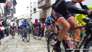 Y como despliegue de color, un nuevo y diferente arcoíris, metáfora que muchos periodistas utilizan con este deporte, el ciclismo que discurre por las calles de la localidad, camino confeccionado por sus piedra, y decorado por el agua procedente del deshielo y corriendo por las típicas regaderas.