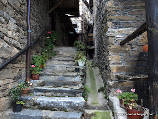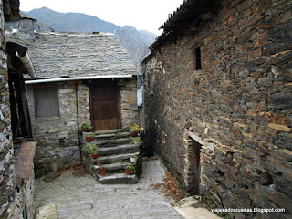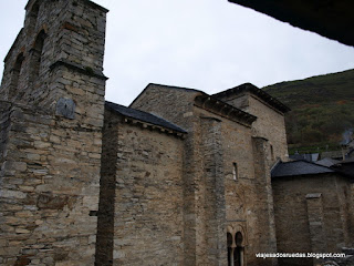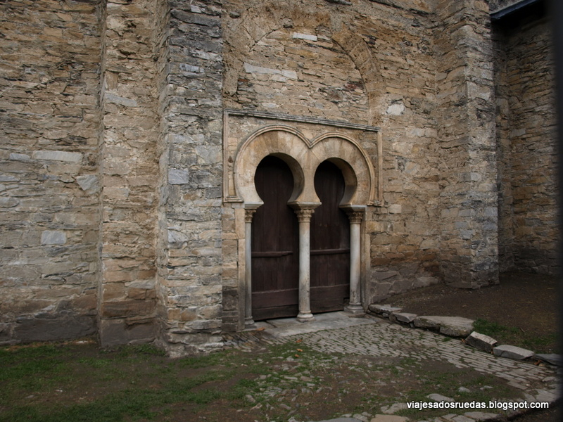 Una vez en el estacionamiento dejamos las motos y ahora a pie recorreremos las calles de este pueblo, de aproximadamente 20 habitantes, y que nos recibe con sus mejores galas, y sus mejores piedras, con un pequeño bar a la izquierda de su calle de acceso, y otro en la parte inferior del pueblo, junto a la iglesia, edificio principal de la localidad y que pertenecía a un monasterio fundado por San Genadio, en el siglo X, de que solamente existe la iglesia que data del año 937 por el Abad Salomón, donde se puede observar su puerta de doble arco de herradura, considerándose una joya del mozárabe español.