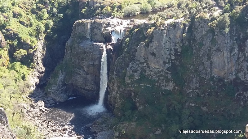 La primera visita la realizaremos por la zona de Masueco, para lo cual llegaremos hasta dicha población, en nuestro caso desde Vitigudino, por la carretera SA-314, al llegar a la plaza giramos a la derecha, y siguiendo las señales, tomamos un camino sin asfaltar de sentido único que tras 2 km aproximadamente, nos llevará sin pérdida hasta un cruce perpendicular, nuevamente a la derecha, y otros trescientos metros, donde nos encontraremos con una zona para estacionar, mucha precaución con el estado del acceso. Link para ver detalle ruta desde Masueco a Cascada