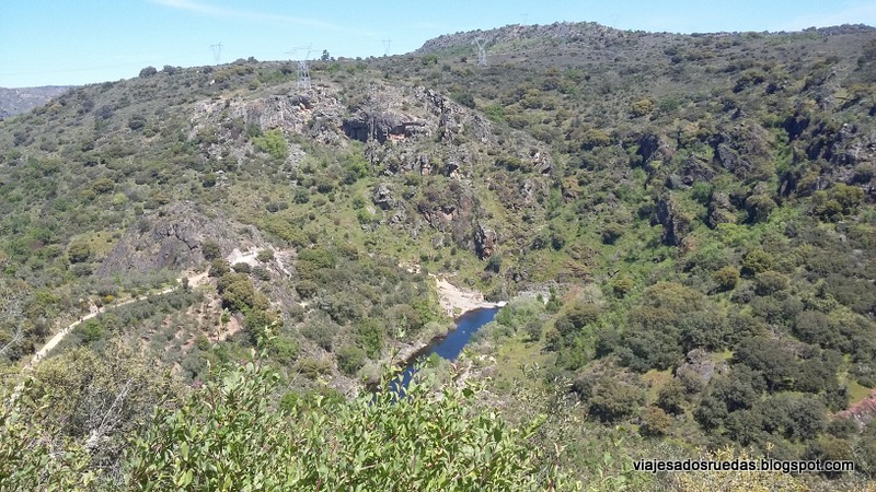 Una vez lleguemos a la zona de estacionamiento, recobramos el aire, en menor o mayor tiempo, según la velocidad de ascenso elegida, para tomar el camino por donde hemos llegado, y seguir recto, dejando a la izquierda la vida de acceso al paraje, tras este primer cruce nos topamos con otro, que indica la dirección para caminantes, y que nuevamente dejaremos a nuestra izquierda, para tomar el que nos indica una señal en madera, que coincide con un tramo peor al que hemos tenido hasta este momento para llegar al pueblo de Masueco, que dejaremos para tomar la carretera dirección a Vitigudino SA-314, tomando en el primer cruce la carretera dirección Pereña, distante unos 10 km del punto de salida.
