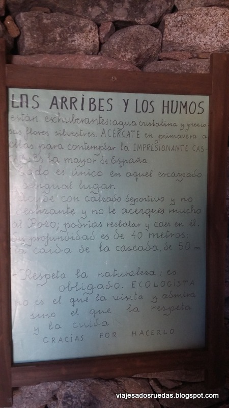 Muchas veces hemos estado en el Pozo de los Humos, aunque cada vez que repetimos son más numerosos los grupos de personas que nos vamos encontrando, más caótico el acceso a la zona de estacionamiento cercano a dicho lugar, y más estropeado, por la zona de Masueco, se encuentra dicho acceso, aunque sin duda todo esto se olvida al llegar al punto objeto de esta excursión que os presentamos.En pleno Parque natural de Las Arribes del Duero (O también llamado Los Arribes del Duero), y en el curso del río Uces, justo entre las Localidades de Masueco y Pereña de la Ribera (como si pudiéramos trazar una recta entre ambas localidades), nos encontramos con una increíble cascada de unos 50 metros de altura y una melodía musical creada por el propio agua.