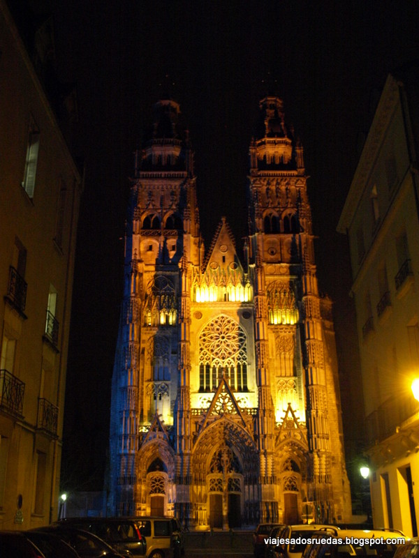 Tras la merecida cena, nos dirigimos a la Catedral de Tours, maravillosa e impresionante construcción, aprovechando el paso para deleitarnos con el ambiente, los restaurantes y sobre todo con la ciudad, y sus casas, además de los edificios emblemáticos existentes.