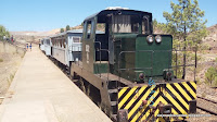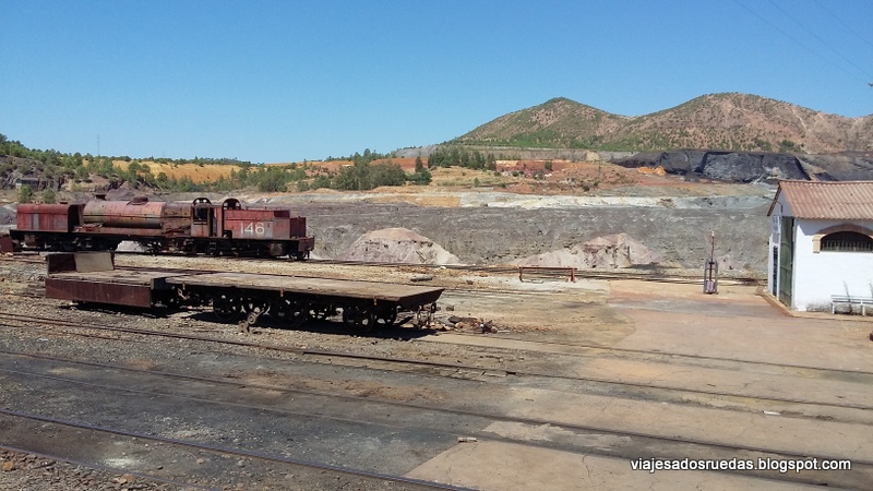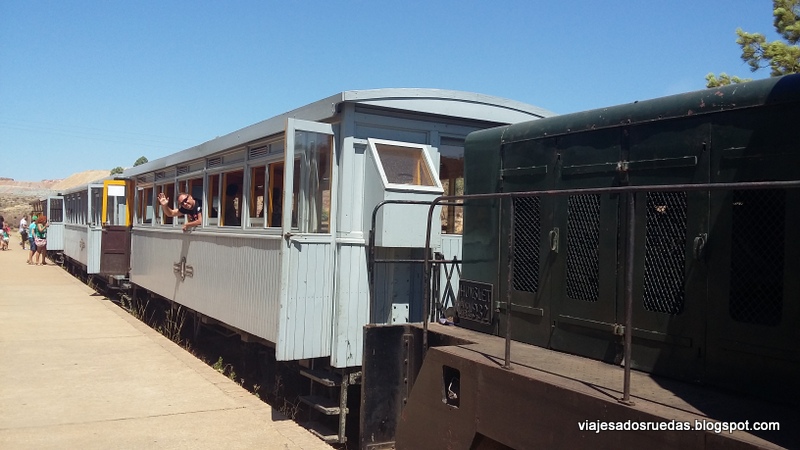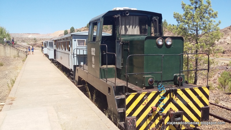 - Ferrocarril Minero, Máquina de Gasoil y cuatro vagones dispuestos para poder realizar un tour a través de las Minas de Riotinto, y paralelo al río del mismo nombre.
