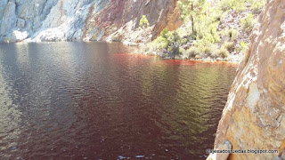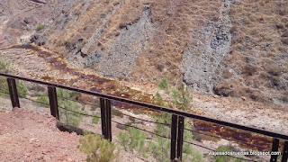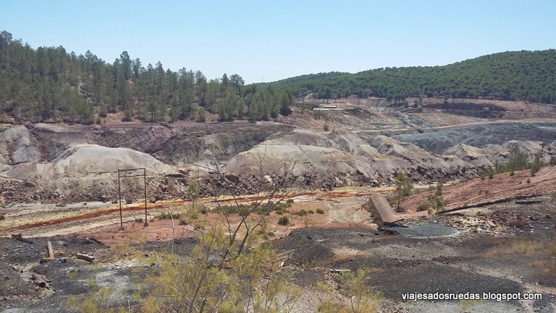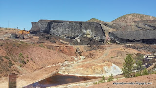 Siguiendo por la galería, única que podrá visitarse, llegamos al final de la misma, a una zona abierta, parecida a un balcón, desde donde se puede observar la mina a cielo abierto, y los restos de las voladuras que conseguían poner al descubierto los metales que eran extraídos.