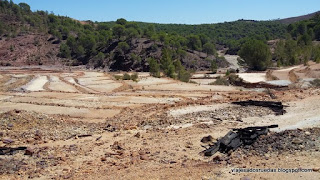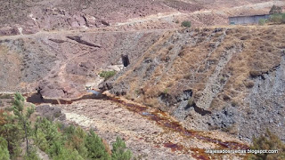 Al salir de la mina, dirección el parking, observamos el suelo existente en los alrededores, llamándonos la atención los restos que en el seco suelo pueden observarse, restos de color verde, procedente del azufre existente en la tierra que nos rodea, que al llover son sacados por el agua hasta la superficie, y que pueden verse por toda la zona que nos rodea, a varios kilómetros a la redonda.