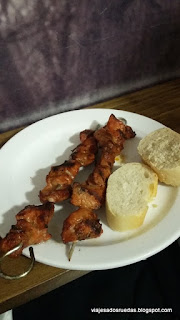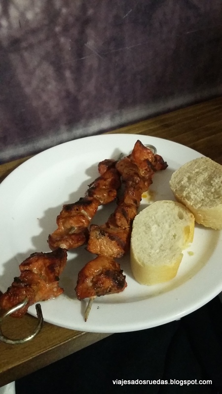 Tras la primera experiencia y siguiendo por la bulliciosa calle, nos introducimos en otro bar, Ribera, donde pudimos disfrutar de un estupendo pincho moruno, y un buen vino tinto de la zona.