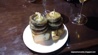 El primero lugar visitado es el Bar Ontañón, tal vez visita realizada por el expositor de pinchos que se veía desde la calle, aunque sinceramente la calidad de los pinchos, en relación al elevado precio, no fue de nuestro agrado.