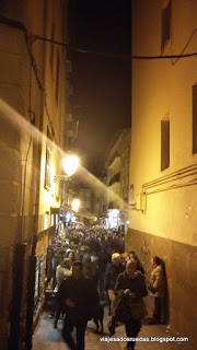 Posteriormente y tras recorrer sus calles el hambre llega a nuestros estómagos, por lo que dirigiéndose nuestros pasos hacia la calle Laurel, comenzamos a deleitarnos con los olores de la comida, y a visualizar una marea de gente, que pensando lo mismo que nosotros recorren al unísono sus céntricas calles, abarrotadas de bares.