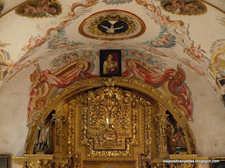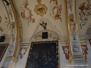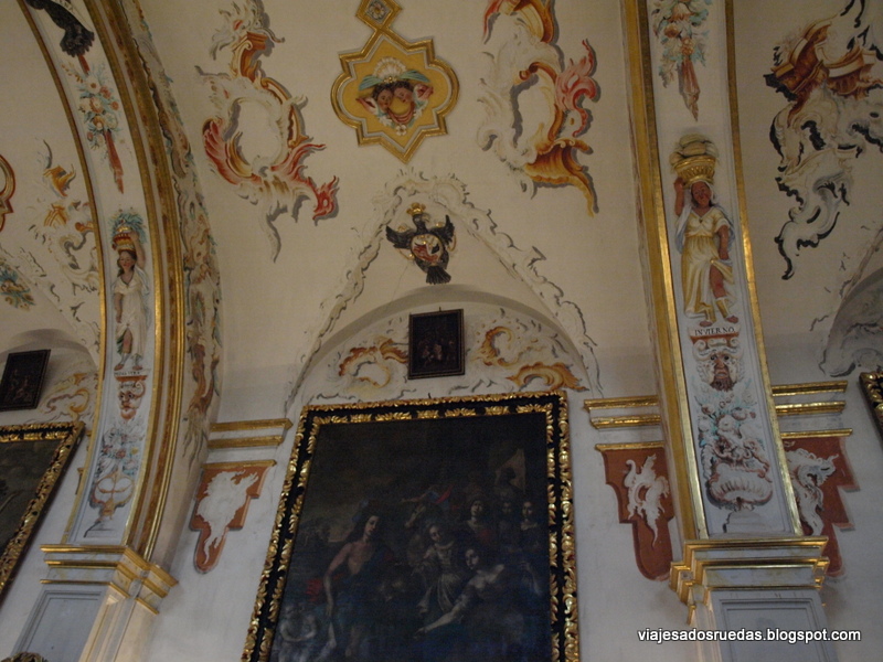 Destaca la cúpula, pintada de forma que se simula casetones.