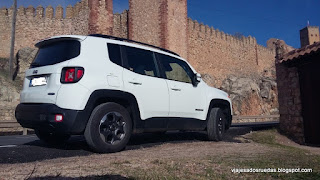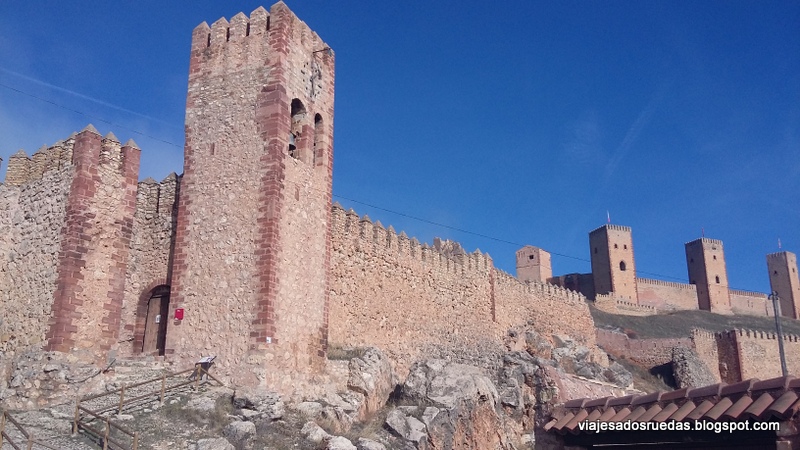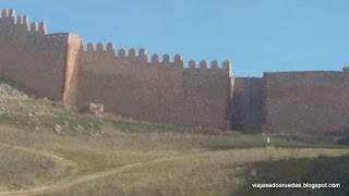 Al adentrarnos, desde Guadalajara, en la localidad nos llama la atención una muralla ubicada en la colina a la izquierda, en sentido a nuestra marcha, muralla que rodea tanto el castillo como el burgo.