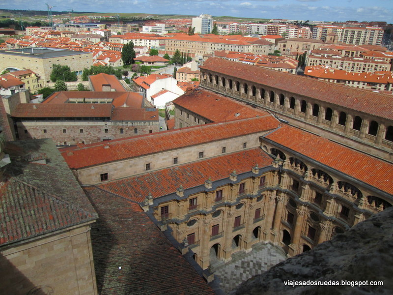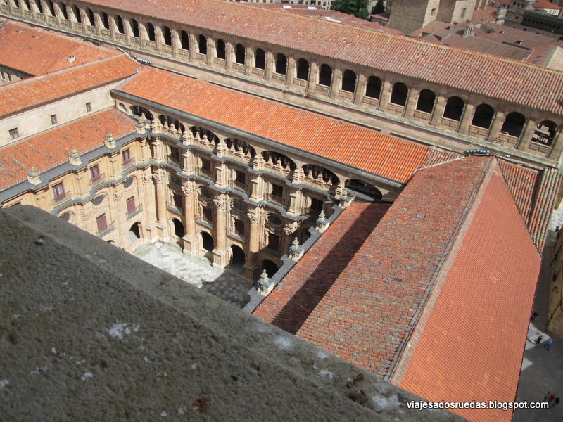 Una vez en La Pontifica, subir hasta la máxima altura disponible de las Torres, junto a las campanas de la iglesia, para, posteriormente llegar hasta el impresionante Patio interior.