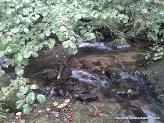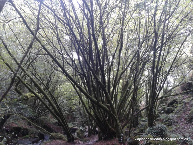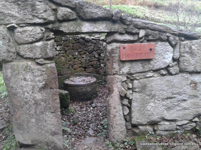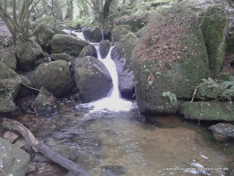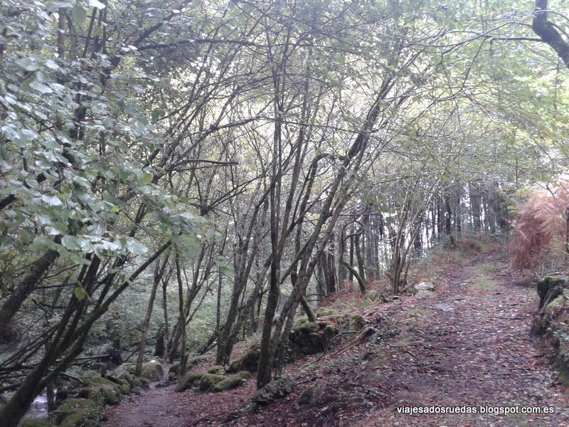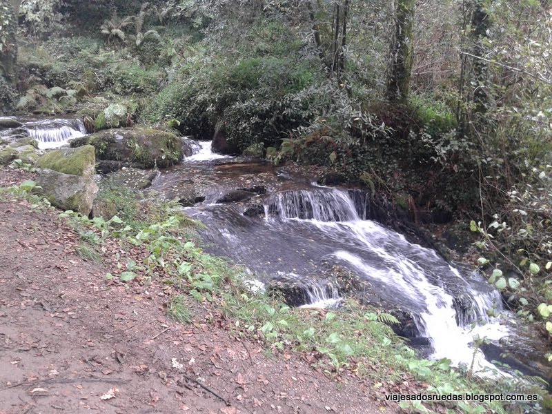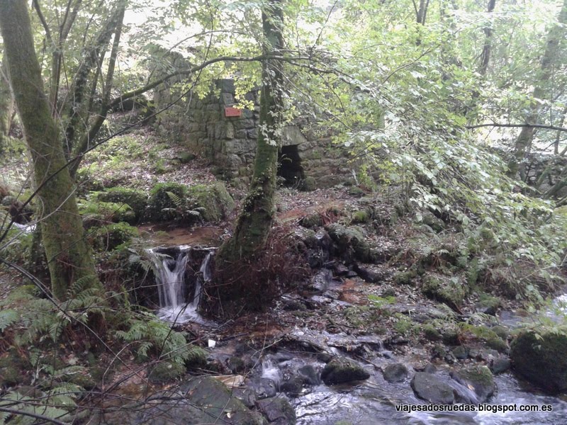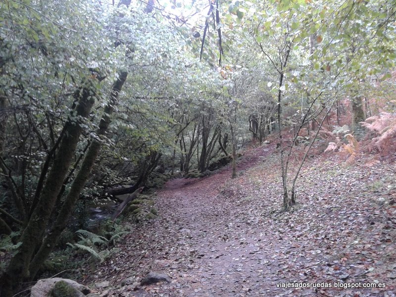 Al inicial la ruta, en descenso, recorremos una serie de praderas, las cuales finalizan justo en el momento de atravesar un pequeño camino, que nos hace entrar en el bosque, rodeado de árboles, y donde comenzamos a pasear junto a nuestro compañero de ruta, el río Armenteira, el cual nos deleitará con cascadas de agua, y transparentes aguas, que alimentando los numerosos molinos que comenzamos a ver, conseguían entre ambos, agua y molino, el objetivo de moler el grano, actividad principal de la zona.